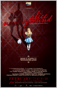 “Alice Underground” is FREE to all audiences, but donations are gratefully accepted. Seating is limited. Rated PG-13.