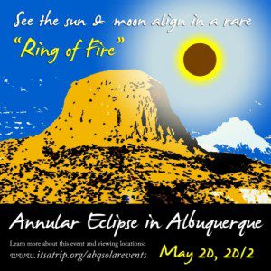 On May 20th, the first annular eclipse in 18 years will be visible from the United States. Albuquerque, New Mexico is said to be the best urban location to view this “ultimate astronomical event.” An annular eclipse occurs when the moon covers most of the sun’s disk leaving a thin ring of light around the edge appearing as a “ring of fire.”
