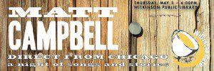 Matt Campbell’s FREE show at the library marks the beginning of a broader tour that has him performing in Denver, Kansas City, and Los Angeles.