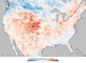 Based on research conducted by the National Atmospheric Space Administration (NASA) and the National Oceanic and Atmospheric Administration (NOAA), the increase of extreme weather events such as the current heat wave sweltering the western United States is a result of global warming. Furthermore, data derived from Moderate Resolution Imaging Spectroradiometer (MODIS) on NASA’s Terra satellite, reveals that land surface temperatures (LST) indicate that manmade surface materials such as the dark roof of a building or the black pavement of a road are capable of capturing and retaining a high degree of heat that could potentially serve as a point of fire ignition. Compounding the problem, mainstream media in the United States have chosen to ignore a high level of agreement among scientists about the interrelationship between human-induced global warming and the increasing frequency of forest fires in Colorado: only .6% of the coverage on the major television networks and 6% of print media mentioned the connection between global warming and forest fires.