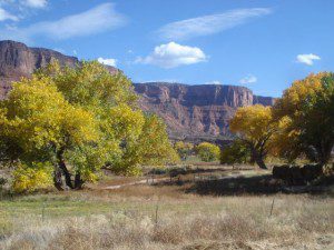 I left home yesterday – Wednesday, September 5th – at 10:00 am. Early morning had been cool – 47º at 5:00 am – but by the time I drove out our driveway, it was 61º. Cruising through Unaweep Canyon – the red rocks, the winding river, the still deep-green cottonwoods – it could have been mid-summer. But somewhere between Gateway and Grand Junction, I noticed the magical, vibrant glow of sunlight illuminating the first stage of changing leaves, drenching lime green tops and tips of trees, surrounding them with halos of luminescent yellowish light. It was stunning, awesome, enthralling. I wanted to stop and take pictures, but I was on a mission with a schedule, making time, and just kept driving.