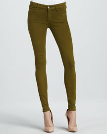 The bodies break down into two main styles: a skinny pencil and a skinny cropped cigarette. Boot cuts and trousers are available, but not as important a look. Fashion washes are trending, including color blocking and metallic finishes. Right now look for the avocado-colored skinny. Next month color blocking will be hot in a black front/brown back combo, as well as a black brocade.