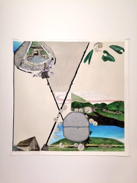 In addition to Schutz’s work, high on that list are the lyrical, minimalist canvases of former Abstract Expressionist Jo Baer. Artifacts, buildings, landscapes emerging from washes of gray fields stand in for cultures way past, just past, and now, dreamscapes the artist has described as “metaphoric worlds.” Not revolutionary, but wonderful additions to the overall mix.