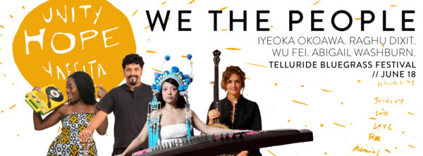 “In response to the divisive politics in this country, we wanted to create a gospel set that celebrated unity and diversity. Abigail Washburn was the obvious choice as an artist whose warmth, curiosity and deep love for humanity has led her to many international collaborations in the past,” explained Brian Eyster of Planet Bluegrass. “For this special ‘We the People’ set, Abby is bringing in some of her favorite musicians from around the world, from China, India, Nigeria, who will perform along with numerous special guests who are already in the Telluride Bluegrass lineup. This is one of the most anticipated only-in-Telluride sets of the festival. And Abby is very passionate about the subject and the music she is creating with these artists.”