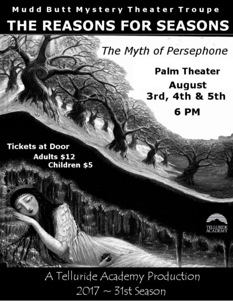 And, at least according the Greeks, that major hissy fit explains “The Reasons for the Seasons” – also the title of the Telluride Academy’s upcoming Mudd Butts Mystery Drama Camp production.