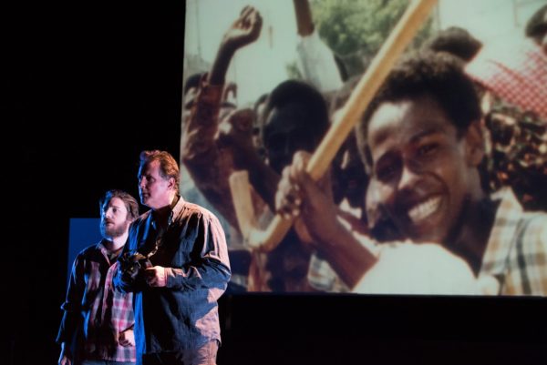 The story snapshot is this: A photojournalist takes a grisly, disturbing image of a dead American soldier being dragged and beaten through the streets of Mogadishu. And a playwright grappling with the ghosts of American History reaches out to the photographer and begins communicating with him about the Pulitzer-prize winning shot that altered the United States’ involvement in Somalia, changed the strategies of Al Qaeda’s terrorist network, and kept the U.S. out of such genocides as the one that took place a few years later in Rwanda. (At least, the fallout was significant; how much could be precisely tied to this one image is hard to know.) The photographer is the real-life Paul Watson; the playwright is the real-life Dan O’Brien.