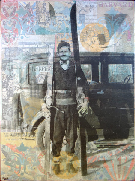 Slate Gray Gallery features Nebraska-native and mixed-media artist Tamara Ruiz. Her contemporary body of work reveals intricately layered images that blend the nostalgic style of old postcards and vintage photographs with pop art elements. A romantic head nod to the past, Ruiz mixes ephemera from olden days, open prairies, and small towns with modern surface design and forms of graffiti to create her strong yet wistful works.
