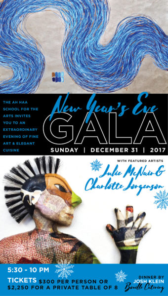 Ah Haa is excited to announce its 2017 New Year’s Eve Gala artists – painter Charlotte Jorgensen and ceramicist and sculptor Julie McNair. These two local talents bring lots of color and humor to this year’s event, which starts at 5:30 p.m. with a cocktail reception and delicious nibbles by culinary artist Josh Klein.