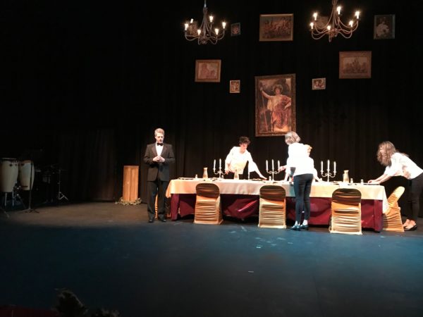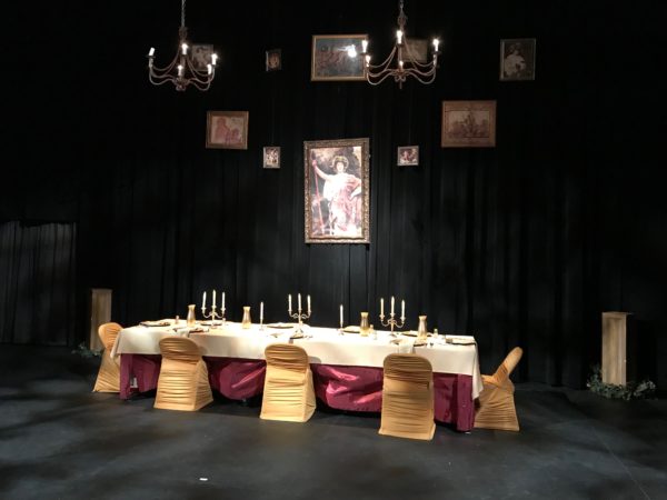 Where was Erika Bush in all the action? We are used to seeing her tall, powerful form in the front lines of the dance. Well, we understand Erika is pregnant – and this time with more than ideas. For her set, the banquet room of Mary and George’s manse, she clearly channeled Frederico Fellini, the Italian film director and screenwriter known for a distinct style that blends fantasy and baroque images with an earthiness. Brilliant and appropriately creepy.