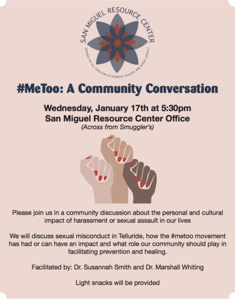 Though many have chosen silence because remembering is so painful, Telluride’s San Miguel Resource Center invites all community members – female, male, other – to join in a discussion about the personal and cultural impact of sexual harassment and abuse.