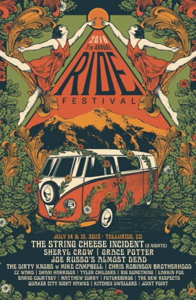 Telluride’s The RIDE 2018 recently announced its headliners, The String Cheese Incident, who are playing for two nights. Joe Russo’s Almost Dead, The Dirty Knobs w Mike Campbell and Chris Robinson Brotherhood are also bringing their unique styles of rock. Questions? Email info@RIDEfestival.com.To purchase tickets, go here.