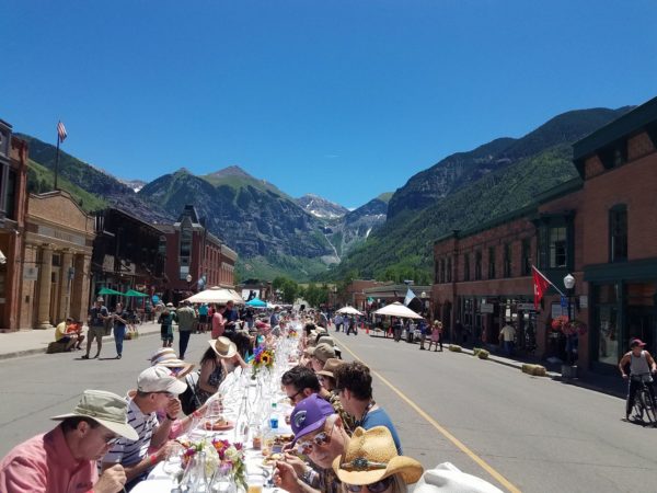 Back by popular demand, on Sunday morning Wine Fest hosts the second annual Al Fresco Brunch on Telluride’s Main Street. The event features a three-block-long banquet table running down the center of Colorado Avenue for a communal dining experience. The only thing better than the food and drink might be the view.