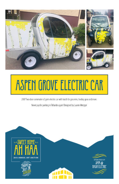 There’s also an aspen tree-inspired GEM electric car designed by Ah Haa’s own Lauren Metzger.