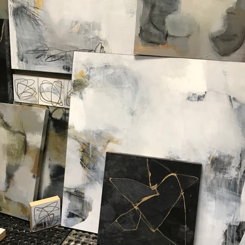 “As a non-representational painter, my work is influenced by landscape and the idea of a sense of place. Whether I am home in the Southern coast which overflows with a serene loveliness or spending time in other places of spectacular beauty, the relationship between the sky and water and land is one of the things that compels me the most. I’m always hoping to find a connection that is not too literal, but that still connects me and the viewer to place. The gray sky and water of winter; the squall lines in the spring; the gathering of the summer storm; the gold light that seems to etch through the clouds; the abstracted quality of lava fields in the Galapagos set against the teal blue of the water; the stark whiteness of bleached bones…it all informs my work. Within this paradigm, I search for a sublime and quiet beauty I hope to capture in my paintings.”