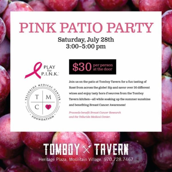 The Telluride Ski & Golf Resort are hosting a benefit at the Tomboy Tavern in support of the Play for Pink Golf Tournament. P.I.N.K. funds are dedicated to the Breast Cancer Research Foundation for state-of-the-art research, as well as to the Telluride Medical Center Foundation’s Preventative Health Fund. The event, which includes wine tasting and hors d’oeuvres, takes place on Friday, July 28, 3 – 5 p.m. The price of entry is $30, available at the door.