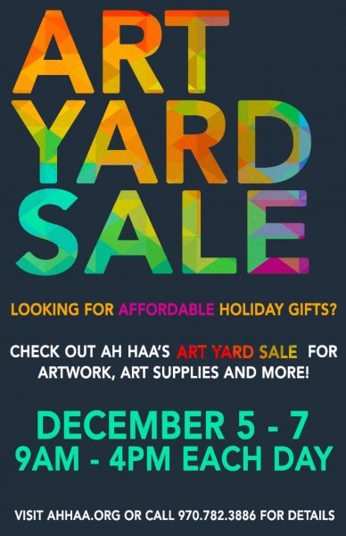 Think Ski Swap – but for Art! Telluride’s Ah Haa School art yard sale is scheduled to be held at the school Wednesday-Friday, December 5th-7th, 9 a.m.–4 p.m. Items for sale include paintings, drawings, mixed-media, jewelry, and photographs.