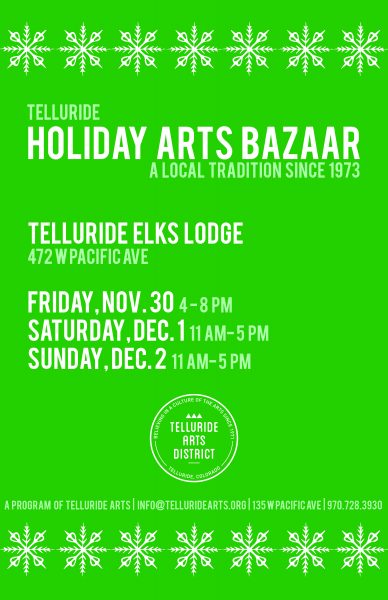 24 Nov Telluride Arts: Holiday Arts Bazaar, 11/30-12/2