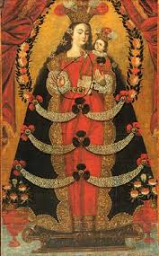 All the madonnas on site, paintings and statues, look like Andre Leon-Talley wannabes. (Or is it the other way around?) They are draped in caftan-like garments covered with symbols of the natural world, so that she takes the shape of a mountain. Mary as Pachamama? It’s everywhere in this country where being “Catholic” means worshipping the Virgin and still celebrating Mother Earth in the old ways. A variation on the theme of a jazz improv.