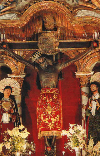The “Senor de los Temblores,” the Master of Quakes,” is a blackened statue of JC. It is one of the most emblematic symbols of Christianity in Peru today. According to legend, during its journey from Europe to Peru, the ship carrying the statue encountered an horrific storm. Desperate, the crew raised the Christ figure into an upright position and magically the maelstrom passed.