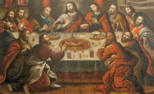 Zapata replaced the traditional main course of lamb with a Viszacha, a wild Andean chincilla (not a guinea pig and many think). According to Andean myths, the chincilla was the spiritual guardian of lakes and mountains. A window behind the Christ figure depicts a sky full of stars, including a shooting star. (Hard to miss the metaphor, no?)