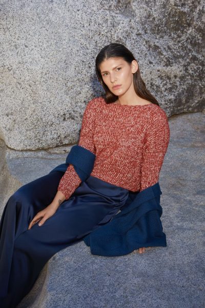 “HANDMADE” merges the work of Iranian born, San Francisco-based artist Hadi Tabatabai with southern Chilean textiles created by artisans in Jasmine Aarons’ company, VOZ: wraps and ponchos (signed by the indigenous makers), plus silk blouses, camis, dresses, jumpsuits, jackets and more. The quiet beauty and understated elegance of the work of both artist and designer are tastefully set off by the graceful flower arrangements of Ella Hassan.
