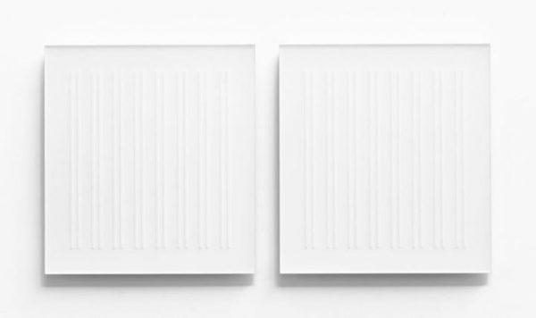 “I work with a variety of materials, such as slate, wood, thread and wax, in addition to paint, to produce a ‘painting’ with a sculptural, three-dimensional quality. For almost two decades, I have devoted my attention to a very tiny area—an area that comprises the physicality of a line and functions as the transitional space between two entities. I view the ‘line’ as empty space without an agenda or allegiance; it is neither here nor there. I have found that by paying attention to this tiny, subtle, yet detailed space, one is forced to turn away from the outside world and focus inward on one’s own interior space.”
