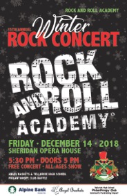 The 15th Annual Telluride Rock and Roll Academy concert takes place Friday, December 14, at the Sheridan Opera House, where 9 all-kid bands (second grade to high school seniors) will be rocking the stage with covers and originals. Doors open at 5 p.m.; concert starts at 5:30 p.m.