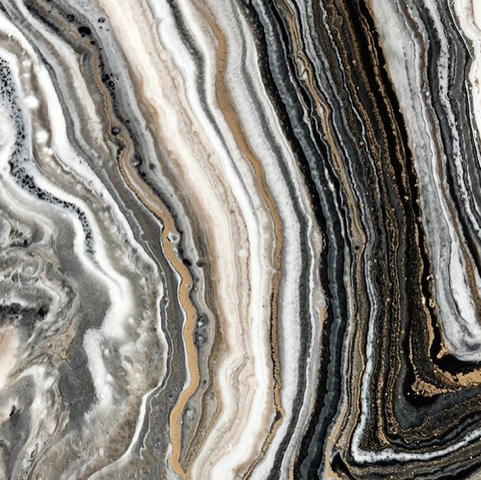 In “Dualities,” Woehler is featuring two different types of works: organic, textural canvases along with high-gloss resins that often resemble stone scattered with minerals.