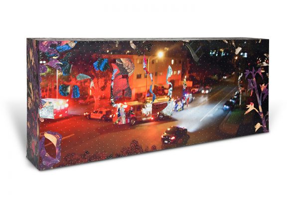 Unlike conventional mixed-media pieces created from cutouts of random images from magazines or photographs and taped or glued to a surface, Berlant works with photo-printed metal (using the artist’s own images, plus vintage and modern metal signage and graphics) and found tin, which he fastens to panels with shiny steel nails, surrogates for his thumb print. The end result is a hybrid that lies at the intersection of painting, sculpture and photography, also Pop art (for its appropriation and elevation of everyday objects), assemblage and abstraction. The work is, at once, all of, yet none of the above: Berlant is his own “ism.”