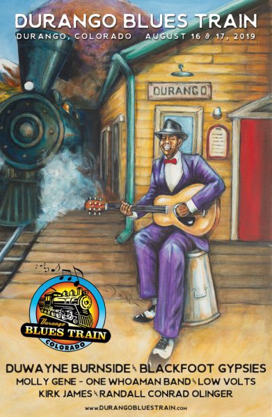 The Durango Blues Train announces its artist lineup for the August event on August 16 & August 17. Featured are Duwayne Burnside, Blackfoot Gypsies, Molly Gene – One Whoaman Band, Low Volts, Kirk James, and Randall Conrad Olinger.