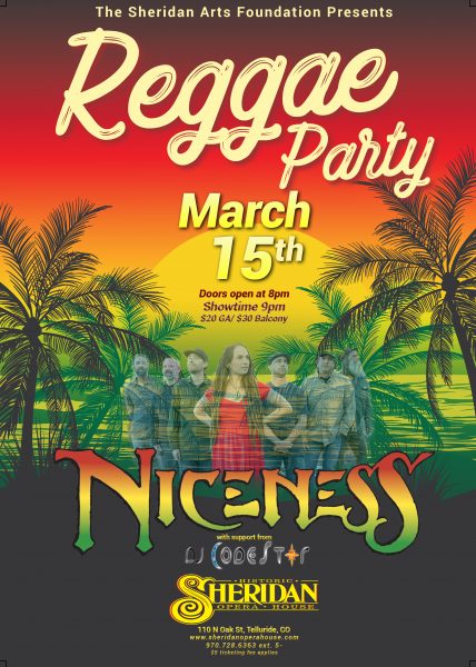 Telluride’s Sheridan Arts Foundation presents Niceness live at the Sheridan Opera House on Friday, March 15. Doors open at 8 p.m,; showtime is 9 p.m. Tickets are $20 general admission on the floor; $30 reserved seats in the balcony. (A $5 ticketing fee is charged at all ticket outlets.) Tickets and additional event information are available at sheridanoperahouse.com or 970.728.6363 x5.