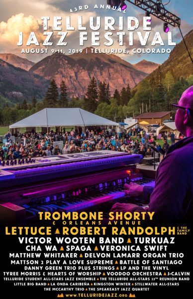 The Telluride Jazz Festival, August 9-11, 2019, announces that its artist lineup will feature Trombone Shorty & Orleans Avenue, Lettuce, Robert Randolph & The Family Band, Victor Wooten Band, Turkuaz, Cha Wa and more.