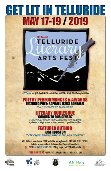 The 6th Telluride Literary Arts Festival features eclectic events for lovers of books and the written word in general. For the complete 2019 LitFest schedule and presenter bios, visit www.telluridelitfest.weebly.com. For tickets, $20, to the always sold-out Literary Burlesque, this year at the Palm’s Black Box Theatre, head to Telluride’s Between the Covers Bookstore or call 970-728-4504. Note: Pam Houston’s book “Deep Creek” is available for review loan at the bookstore.