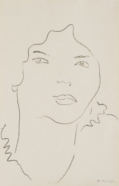 During World War I, Galerie Thomas explains, Matisse was not able to hire professional models. He created portraits of the wives of artist friends, such as Madame Derain, Mme Gris und Mme Dimitrios Galanis, or of acquaintances. The artist was very much interested in music and also knew several musicians, of whom he also made portraits, such as Juan Massia, a violinist, and Carlos Olivares, a cellist. “Portrait of Emma,” 1916, is one of a series of drawings of Emma LaForge, a Parisian violinist. Matisse also created a number of etchings of Emma, as well as monotypes, of which some are in the collection of the Museum of Modern Art, New York.