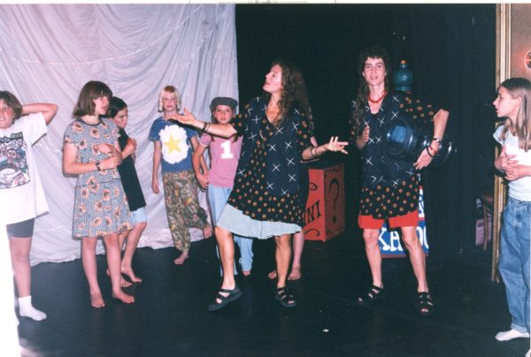 Pulling back the curtain on the history of the Mudd Butts, the idea of creating a drama camp for kids in Telluride had been blowing in the wind. In 1987, the seed took root: the Telluride Academy, then under the auspices of director Wendy Brooks, effectively became the troupe’s producer. Sally Davis and Kim Epifano (and John Fago, who is no longer directly involved) became co-directors. Mudd Butts thrived and grew: one spin-off, Mudd Butts International, acted as a diplomat without portfolio, forging relationships and developing mutual understanding and respect for young neighbors around the globe through the medium of theater.