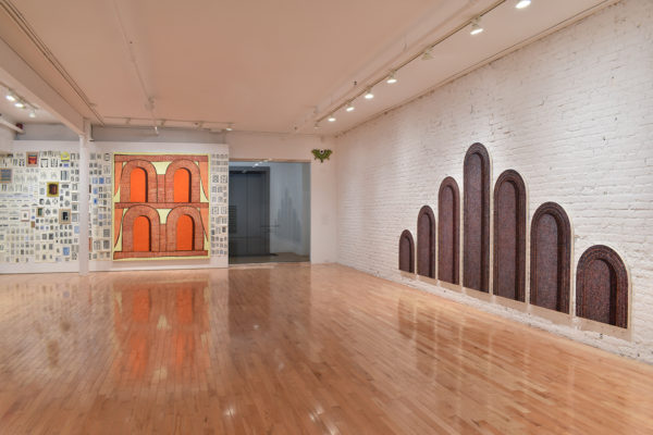 Matt Kleberg’s paintings of abstracted passages in the form of warped prosceniums and archways are largely built with oil sticks which lay down brightly-hued stripes and concentric shapes of ofttimes cacophonous colors. Structurally the artist’s intensely engaging, decorative images walk a tightrope between architectural volume and painterly flatness, pay tribute to one of the artist’s major influences: Frank Stella. However, while honoring his debt to one of the greatest mark makers of the 20th century and beyond, Kleberg takes exception to one of Stella’s most famous dictums: ‘What you see is what you see.” In contrast, he believes:“We can’t escape the world. It is our visual vocabulary.”