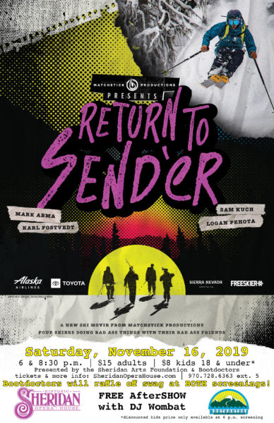 The SHOW Bar at the Sheridan Opera House opens at 5 p.m. and will be open to ticket purchasers throughout the entire evening. Bootdoctors will be raffling of tons of great swag at both screenings. Free in the SHOW Bar following the 8:30 p.m. film is our first AfterSHOW of the season, a dance party with music from DJ Wombat. DJ Wombat’s first love is reggae and is known for spinning Phish and Grateful Dead, but can get any party started. He is a child of the action sports world, counts skiing and surfing as passions and has been a skater his whole life. You do not need to purchase to movie ticket to attend the AfterSHOW.