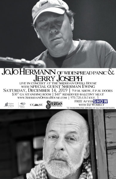 Next up at the Opera House, JoJo Hermann and Jerry Joseph are live in concert with special guest Sherman Ewing on Saturday, December 14, 2019. Free AfterSHOW with DJ Wombat in the SHOW Bar immediately following the main stage performance. Tickets are $30 general admission on the floor; $40 reserved seats in the balcony. (A $5 ticketing fee is charged at all ticket outlets.)