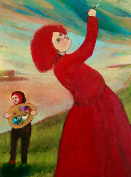 The artist begins each painting using oils, not knowing where the journey will take her, simply trusting her medium and her boundless imagination.