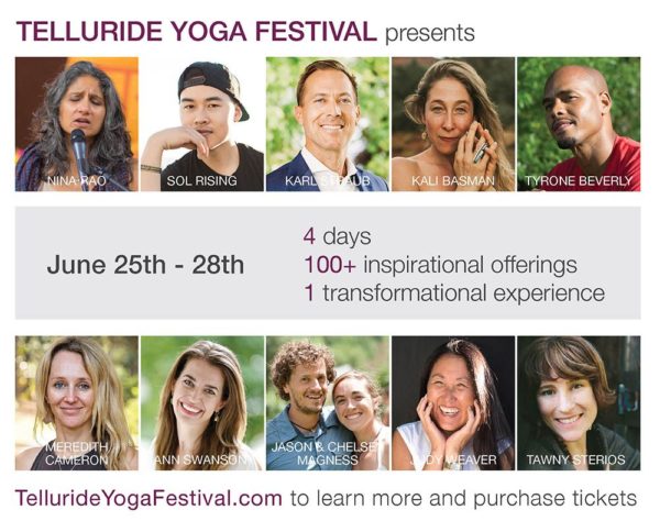 The 13th annual Telluride Yoga Festival, Thursday, June 25-28, 2020, will once again feature internationally renowned instructors and leaders in the fields of health and wellness.