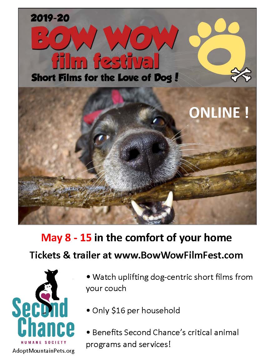 Second Chance Humane Society is excited to announce the fact it is hosting the 5th Annual 2019-20 Bow Wow Film Festival virtually from May 8-15. Bow Wow is an innovative, traveling dog-themed film festival in its 5th year that will now be available from the comfort and safety of your own home, snuggling with your pets on the couch.