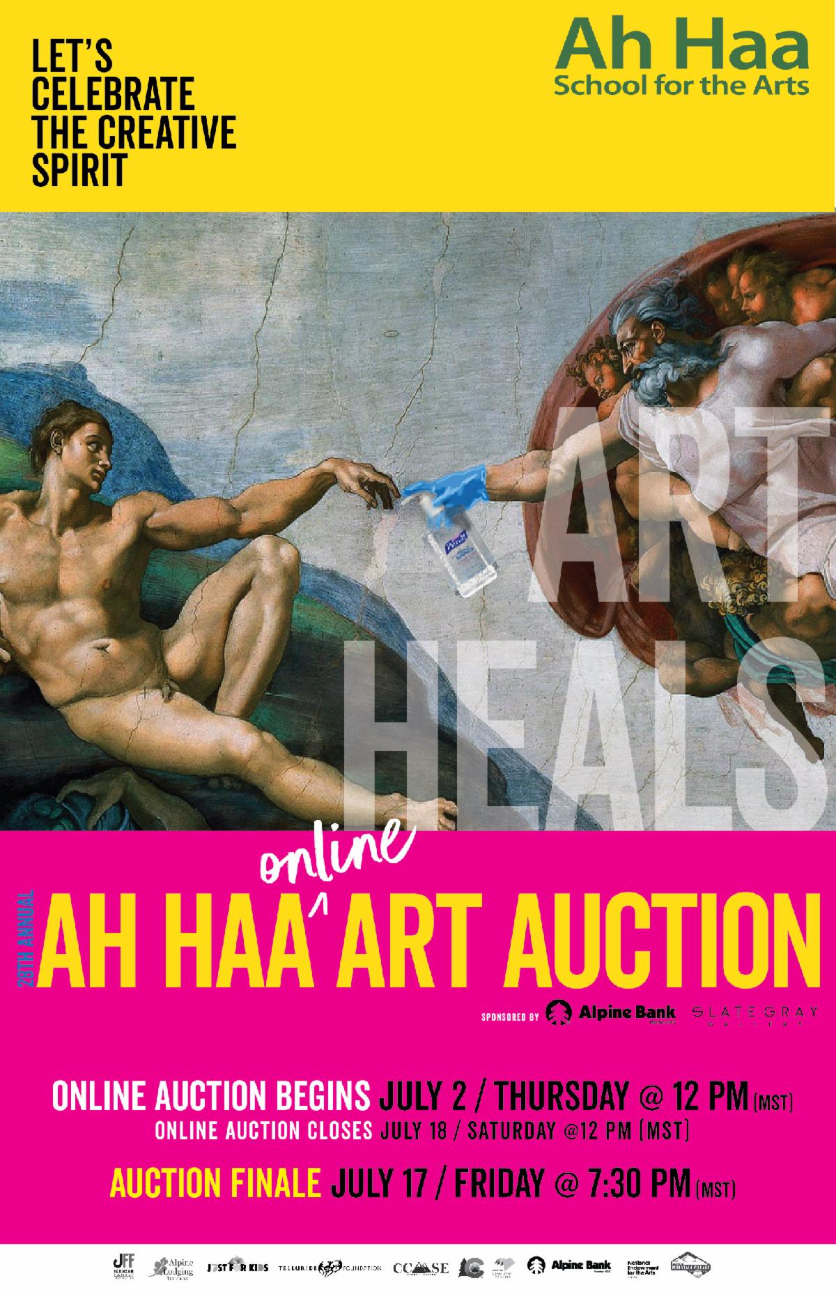 Difficult times call for creative measures, so this summer, Telluride’s Ah Haa School for the Arts is taking a creative – and safe – approach to its 2020 auction. To see what is on the auction block and start bidding, simply register for a free paddle through Ah Haa’s website, www.ahhaa.org. Once on the homepage, look for the “Get Auction Paddle Here!” on the top of the screen. Click on the link to get to the Handbid auction platform, an easy-to-use, secure online bidding system. Once registered, participants can browse hundreds of items, artwork, tickets and deals. Silent Auction bidding opens on Thursday, July 2, continuing until the Auction Finale at 7:30 pm Friday, July 17. The auction officially ends Saturday, July 18, 12 pm MST.