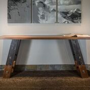 The inspiration for that console-sized table dates back two years. (Story below.) But creating this piece of furniture art took Russell one full year of trial-and-error, blood, sweat and tears, to make.