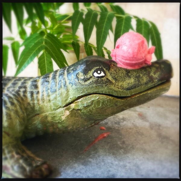 Alligator Sorbet: Black Plum, cherry, sour beer sorbet. Photo Left: