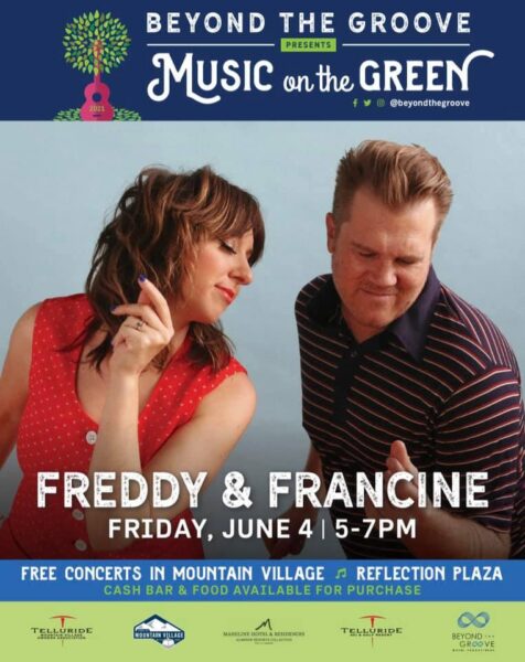 Denise Mongan’s Live Music on the Green series takes place on Reflection Plaza just outside Madeline Hotel & Residences in Telluride Mountain Village, with the help of the Telluride Ski Resort. The first concert of the summer season takes place on Friday, June 4 and features popular duo Freddy & Francine, returning for another encore.