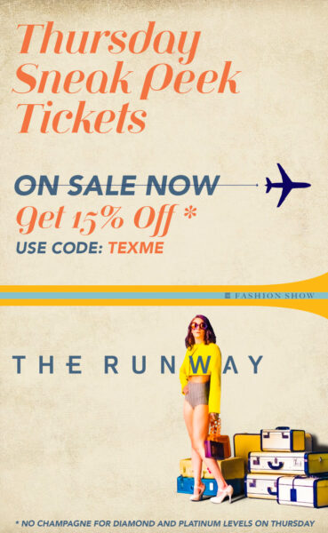 All tickets are being sold as pods of two, four, six and up to eight guests. So you can reserve your table today and surprise your friends tomorrow. The show will be a one-of-a-kind, unforgettable experience. From transportation, bottle service and a golden hour cocktail moment, to your favorite designers walking the tarmac… you’ll be part of the ‘highest’ altitude fashion to ever take place in the nation.