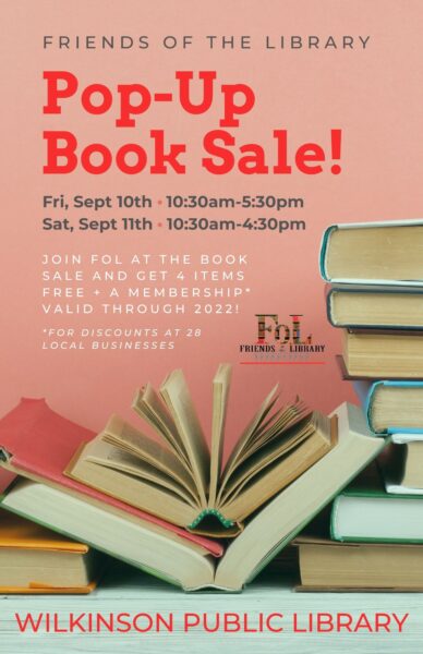 07 Sep Friends of the Library: Book Sale is Back, 9/10 & 9/11!