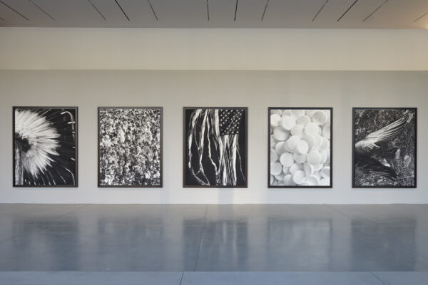 “‘Untitled (American Sinscape)’ is, in part, a tribute to James Rosenquist’s monumental painting F-111 (1964–65), which comprises fragmented images representing and denouncing American militarism. At 30 feet long, Longo’s new installation encourages viewers to meditate on American history. While the works examine the country’s past, they also allude to urgent social and political issues that persist today…,” Pace explains.