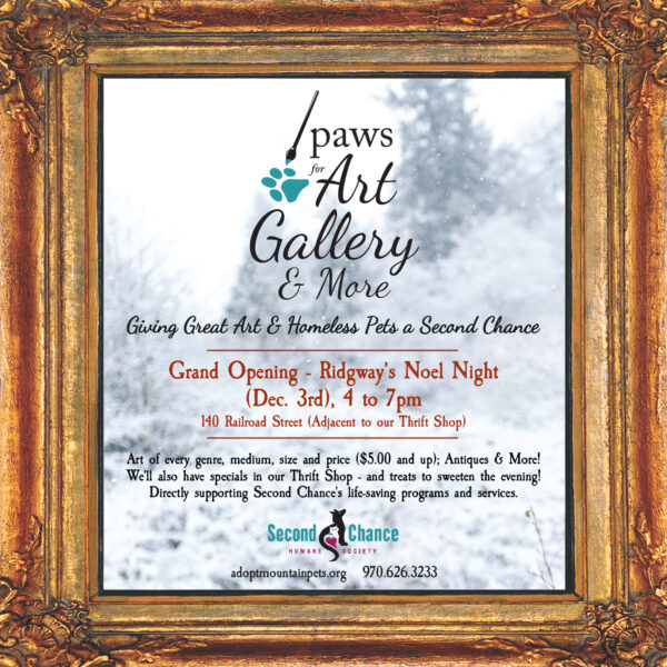 Second Chance Humane Society’s Animal Resource Center and Thrift Shops have been serving San Miguel, Ouray & Montrose Counties for 27 years. Call 626-2273 to report a lost pet, learn about adopting a homeless pet, or about our Emergency Response, Community Medical, Spay/Neuter, Volunteer, or other services. View shelter pets and services online: www.adoptmountainpets.org.