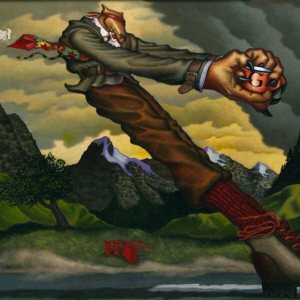 Chupik’s Western landscapes frequently feature unexpected details like rainbow-bright horizon lines and cotton-candy clouds reminiscent of 10-gallon hats. The works are equal parts humorous and haunting.